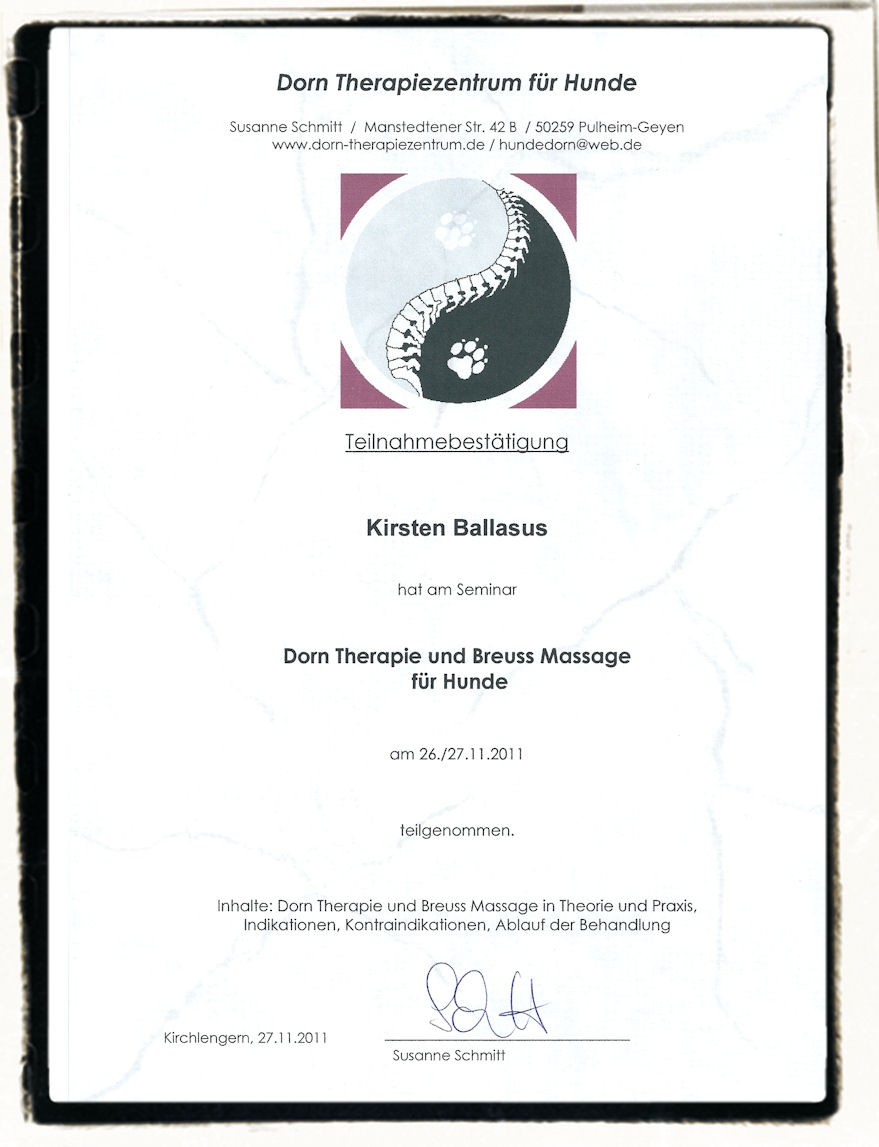 2011 Dorntherapie, Breuss-Massage für Hunde mit Susanne Schmitt